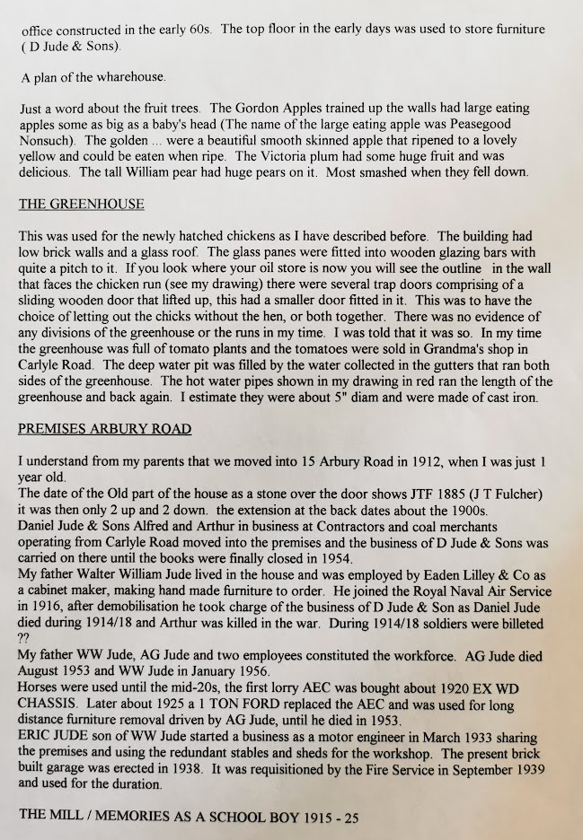 Walter William Jude joined the Royal Naval Air Service.After the war he took charge of the family business as Daniel died during the war and Arthur was killed in action. During WWII soldiers were billeted at the site.