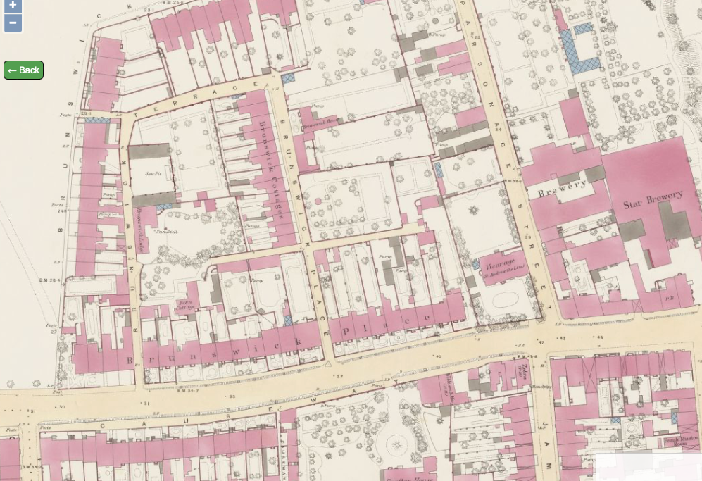The history of this street is quite complex. Most of the houses known as Brunswick Place were to be found along what became Maids Causeway.