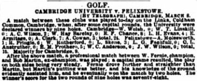 The University course on Coldham’s Common, just off the Newmarket Road, was established in 1875 by W T Linskill. Originally a nine-hole course it was eventually extended to 18-holes.
