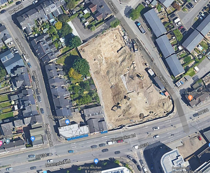 A satellite photo of the area in 2019 from Google: