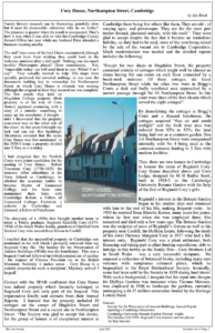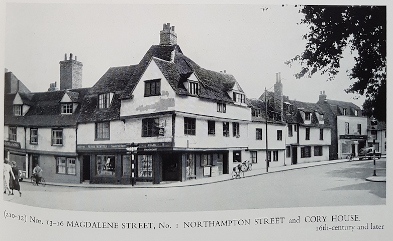 The house and other nearby buildings had been bought by Reginald Radcliffe Cory and bequeathed to to The Society for the Preservation of Ancient Buildings on his death in 1934. The other properties included 10 cottages on the corner of Magdalene Street and Northampton Street.