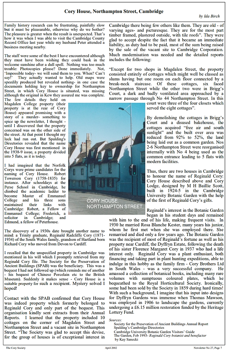 The article by Ida Birch in the Cory Society newsletter of April 2002 is can be found here: