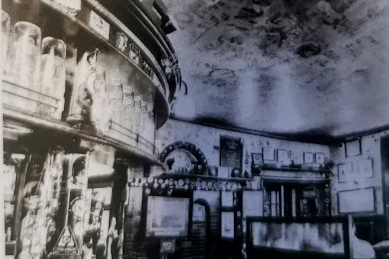 The ceiling of the bar is adorned by graffiti from Second World War airmen.
