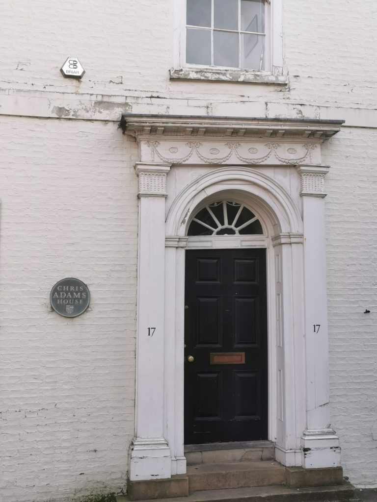 (1959 Royal Commission on Historical Monuments Survey of Cambridge): ‘Botolph House … of four storeys with basement, has walls of Gault brick. It was built c. 1790… The original entrance door of six panels has a fanlight above with radiating glazing-bars.’ Numerous original features survive inside.