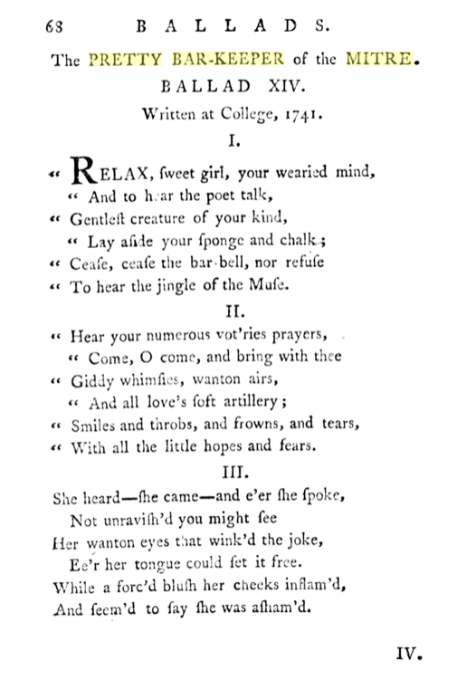 Christopher Smart in 1741 wrote a poem entitled The Pretty Bar-Keeper of the Mitre. However the Mitre did not exist at this location until the latter half of the 19th century. The whereabouts of Smart’s Mitre is unknown.
