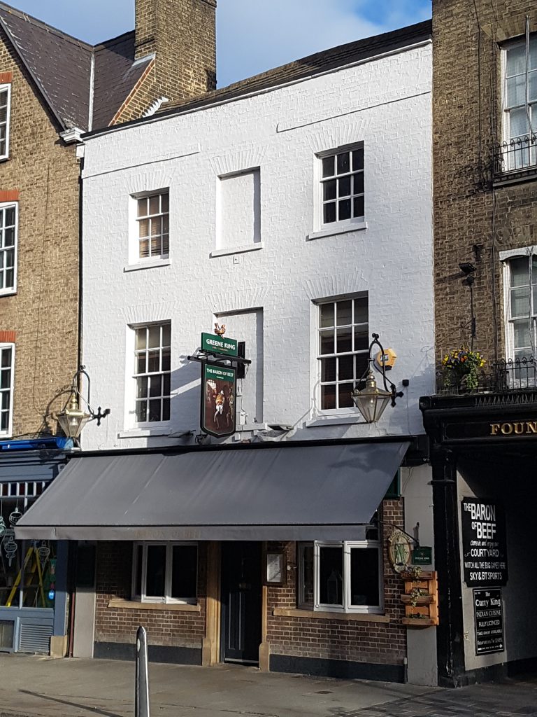 The partnership between Bullock and Ekin was dissolved in 1842 and the pub was then onwed by William Ekin. ‘Ekin’s Brilliant Ales’ were on sale at The Baron of Beef and he seems to have continued as owner until 1887.