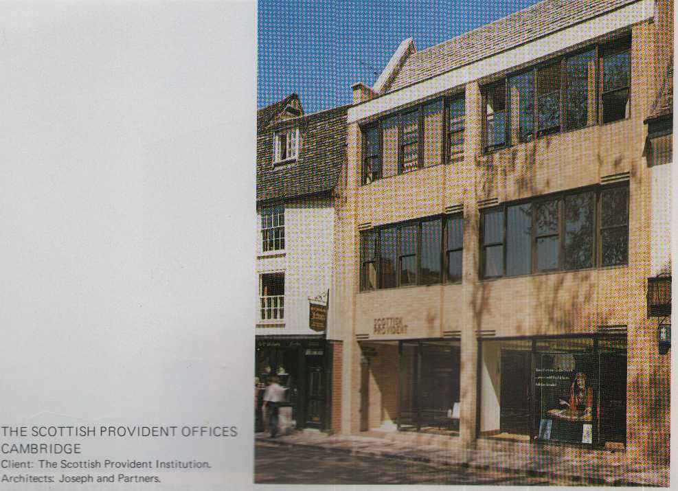 The current building, occupied in 2017 by the Wildwood restaurant, was formerly the offices of The Scottish Provident. The building was constructed by Rattee and Kett circa 1978.