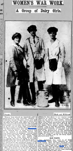 Six girls, as the newspaper called them, worked in the office, eight looked after the cattle on two farms, and some took on laundry work. The remainder attend to the various milk rounds, strenuous work that begins at five o’clock in the morning…..