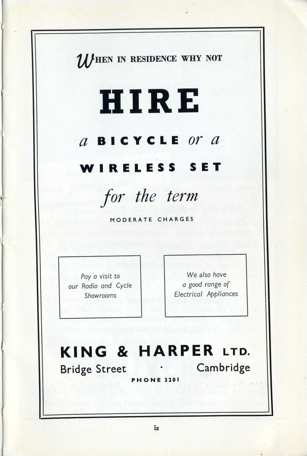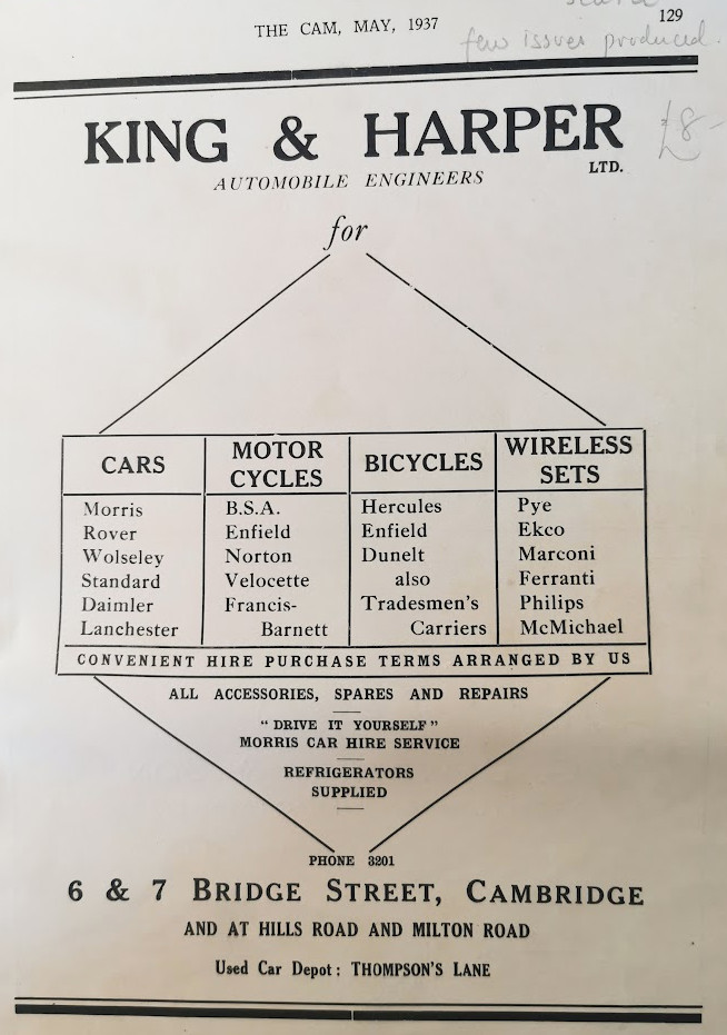 Car and Light Commercial Vehicle Stockists. Heavy Vehicle Distributors. 6 and 7, Bridge Street, Cambridge. Telephone: 3201. And at Hills Road, Milton Road and Thompsons Lane, Cambridge. Directors: H. H. Harper (Governing). D. N. Harper. K. 0. King. F. A. Pedley. A. M. Wells.