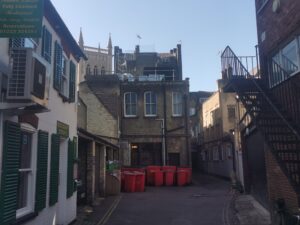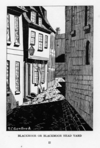 Blackmoor Head Yard (RGL 2022)This was an alleyway perpendicular to Bridge Street between the Mitre Hotel (17) and The Baron of Beef (19). In 1913 there were 12 addresses there.