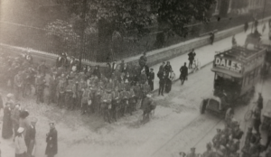 Troops of the Royal Welch Fusiliers en route to St Neots on 4 May 1915.