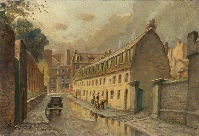 14th century Cambridge map from 'Outside the Barnwell Gate' by H P Stokes, 1915'In medieval times this road was known as Preachers’ Lane, or Blackfriar’s Lane because of its proximity to the Dominican Priory on its south side. The priory gave up ownership of the lane in the reign of Henry III in return for land to the south of the priory.