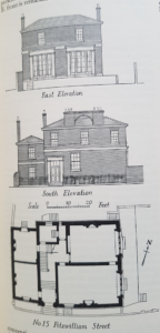 Fitzwilliam Street north side nos 23 - 15Royal Commission Survey of Cambridge 1959: built in c.1825; the authority for the tradition that it was designed by William Wilkins has not been discovered, circumstantial evidence points rather to Charles Humfrey…. The house has many points of similarity with Scroope House. The house, though inspired by the Greek revival, present a functional composition to the street, while the E front is remarkable for the original use of the stylistic convention and an uncompromising duality in design.