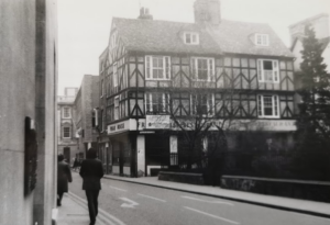 House nos. 1 and 2 at the corner of Bene’t Street is of three storeys with basement and attics. The walls are of plastered timber-framing elaborated with modern applied timber. It was built either as one or two tenements late in the 16th cent. Extensive alterations have been made; the present shop front to no.1 is of the 18th cent. (1959 Royal Commission on Historical Monuments Survey of Cambridge)