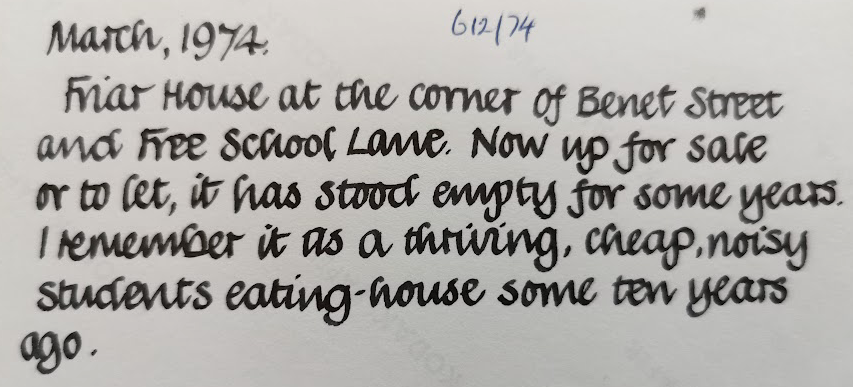 1974, (MoC558/74)See also 12 Bene’t Street
