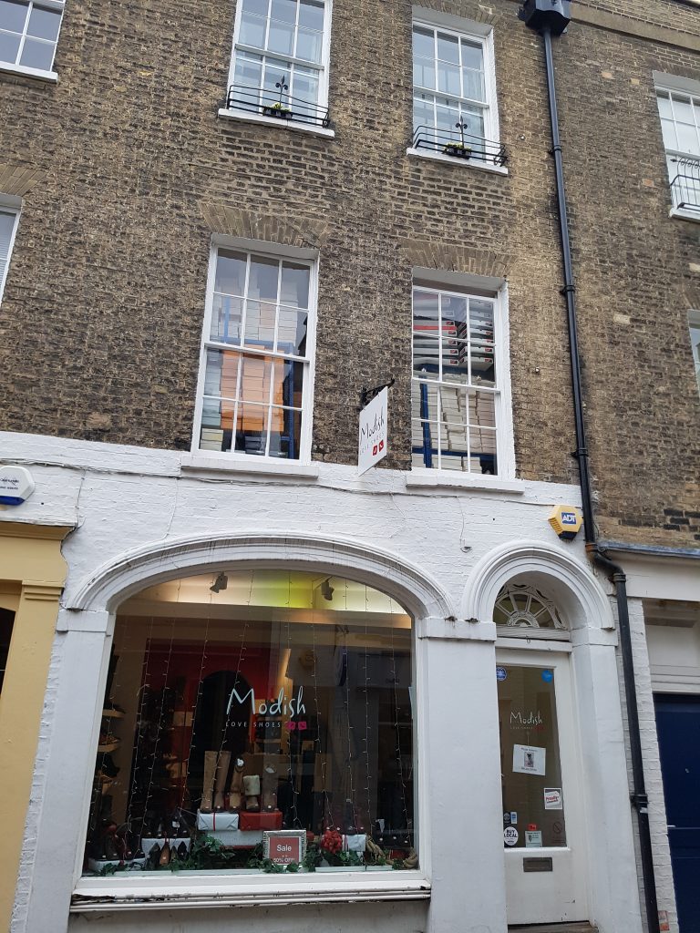 Thomas Holcroft was deprived of his Fellowship of Clare College on account of his Puritan principles. He started to form assemblies of other dissenters and one of these was at the home of a Mrs Petit in St Michael’s Parish, possible at this location in Green Street.