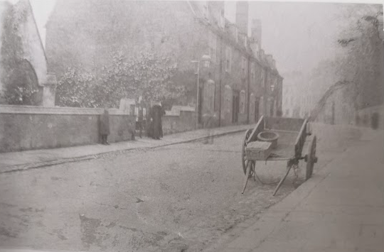 45 Jesus Lane at end of terrace of houses later demolished, looking west c.1870 (MoC)1861