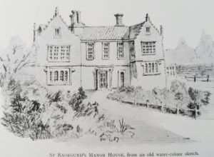 Turning into Manor Street, the sundry fragments of fluted and other worked stone embodied in the rubble wall on our left, remind us that it is built largely of materials obtained during the extensive restoration of Jesus College Chapel, carried out about 1845. Manor Street forms the eastern boundary of the old manor garden, whilst All Saints’ Vicarage stands, more or less, upon the site of the original Manor House.
