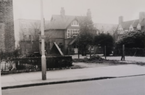 The left hand strip of the garden has been uprooted and taken to make part of the new site of Manor Street. A new drive has been made further to the right of the original Vicarage drive and fenced off.