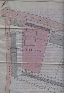 This is the plan attached to the original conveyance. In 1910 there was a dispute with Jesus College as to the rights of the Clergy Training School to extend its premises to the west of the area marked in pink on the original plan. The Training College went to so far as to seek counsel’s opinion; this advice was, in short, that the original covenant was rather unclear and that the proposals made by the Training College would be unlikely to obstruct the access of light and air to Jesus College property.
