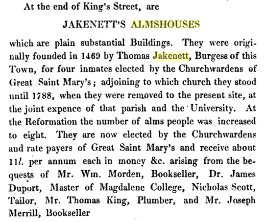 Jakenett Alsmhouses, King Street, CambridgeFurther information can be found on these sites:
