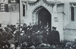 The congregation moved here in 1913 from temporary accommodation in the Victoria Rooms on Market Hill following the vacating of the Hobson Street Chapel in 1904.