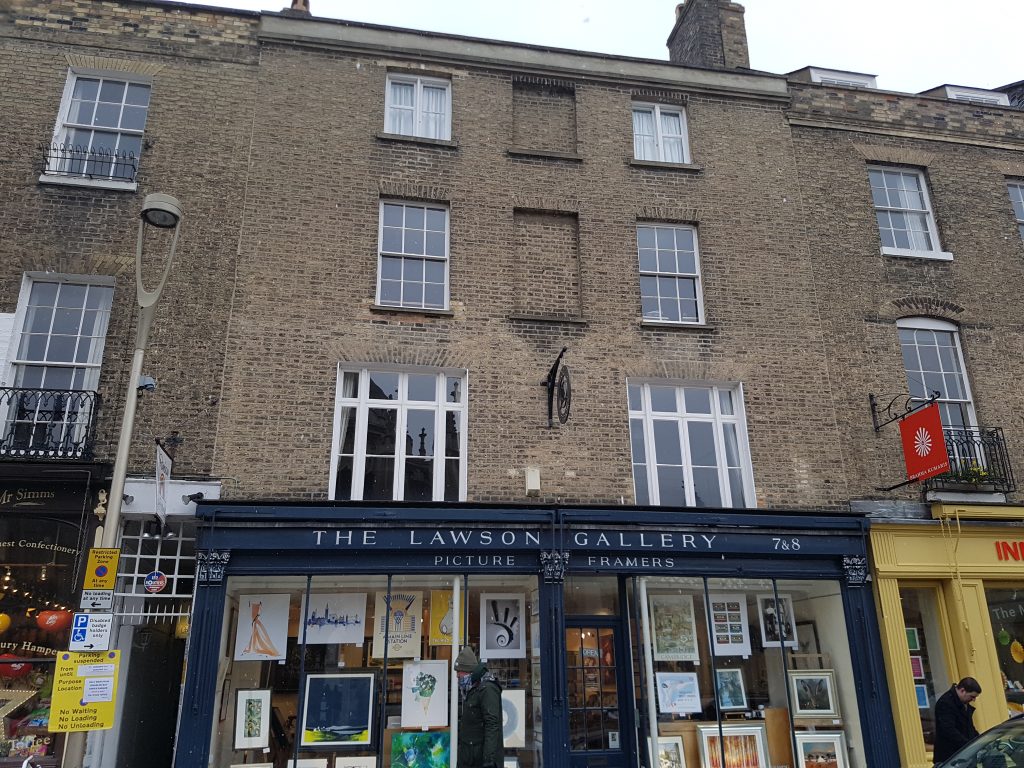 Note from BJH (2024): James Clerk Maxwell (1831-1879), the distinguished physicist (most physicists rank him just behind Newton and Einstein), lived in lodgings at 8 King’s Parade when he was a young undergraduate. He started at Peterhouse in Oct. 1850 and “migrated” to Trinity in Jan. 1851, but continued to live in the lodgings at 8 King’s Parade until the spring of 1852, when he moved into rooms at Trinity. For confirmation, see Lewis Campbell and William Garnett, “The Life of James Clerk Maxwell” (1882), pp. 157 and 159; note that Maxwell also referred to his lodgings as “Ling’s,” presumably a reference to Susanna Ling, the widow who ran the place.