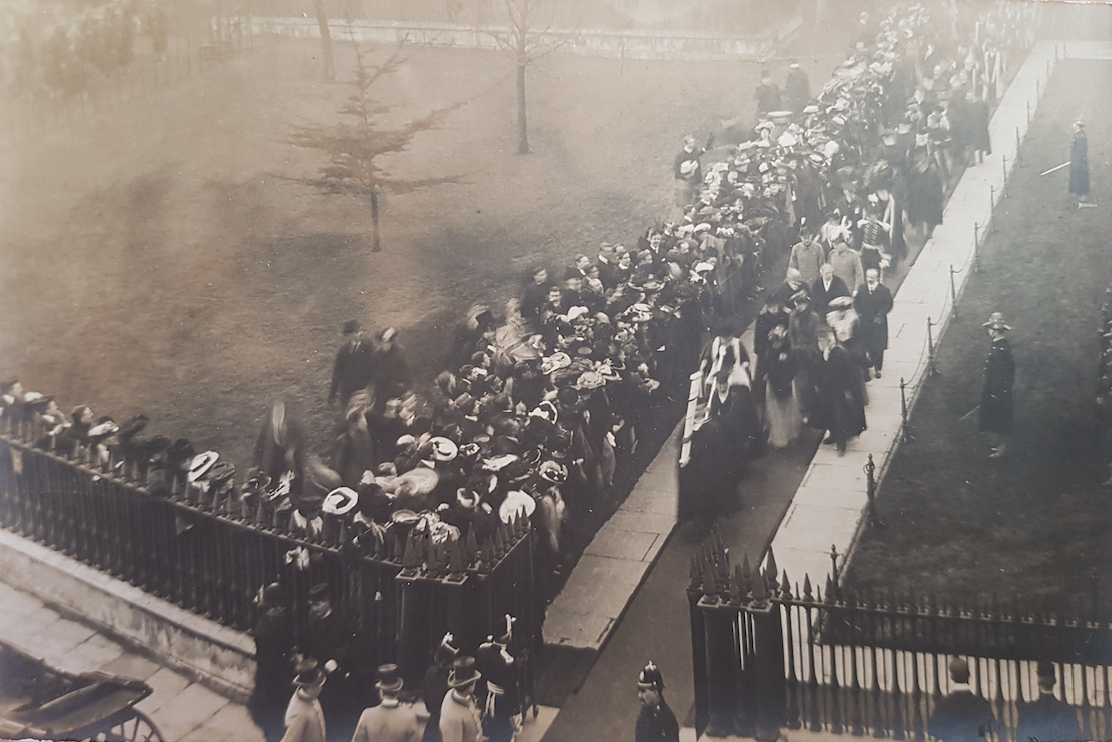 1904 crowds outside Senate House during visit of Edward VII