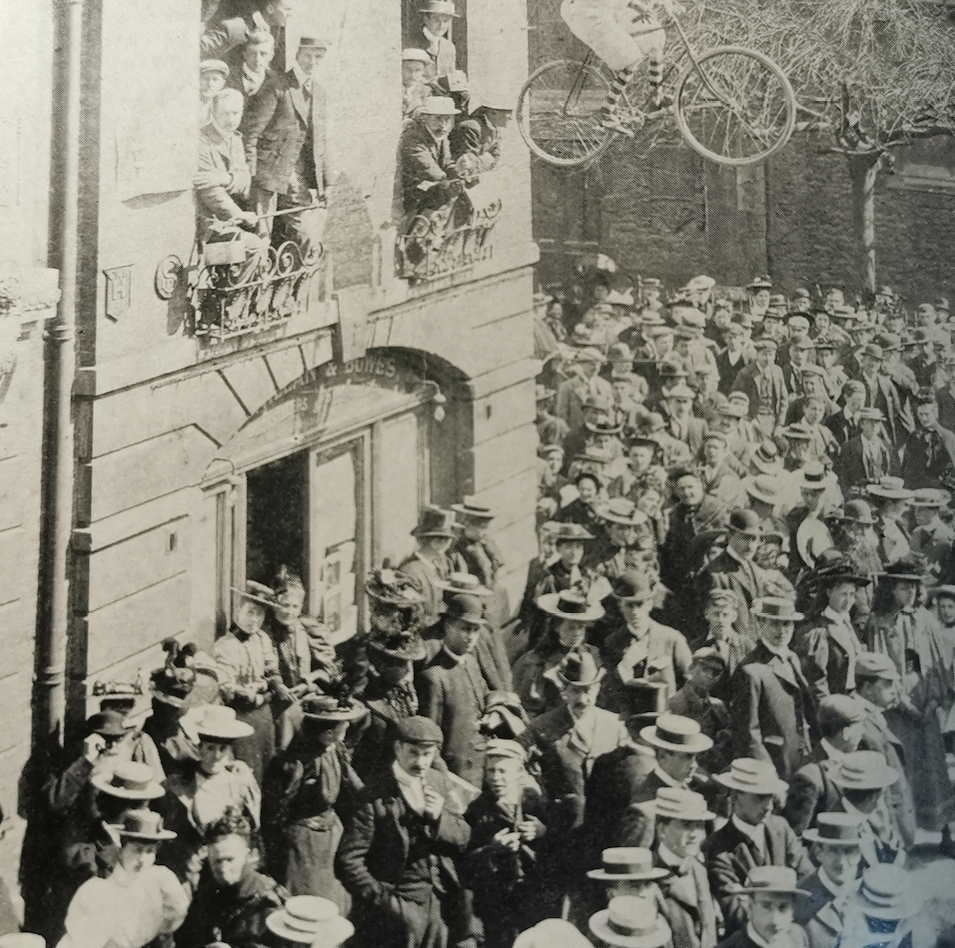 Senate House Hill crowd 21.5.1897 on occasion of vote on degrees for women (Cambridgeshire Collection)