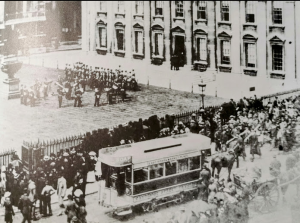 1905The Greek Question vote. A temporary entrance and exit were made through the windows of the Senate House.