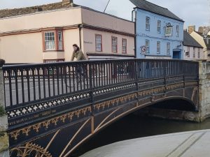Situated on the ancient crossing site, the cast iron and ashlar bridge has the letters ‘Arthur Browne Archt. 1923’. The engineer Benjamin Brown also contributed. The main sections were cast at Derby. Total cost was £2,350.
