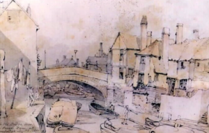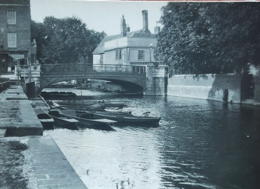 The 1831 New Guide to Cambridge states that ‘in 1275 the Bridge at this spot was in a ruinous state and was probably soon after rebuilt. It is recorded that a Bridge was rebuilt here, in 1482, at the expense of the owners of what are called the postage lands, and that another Bridge was built in 1754, by subscription, when the remains of a bridge supposed to be of Roman construction were discovered.’