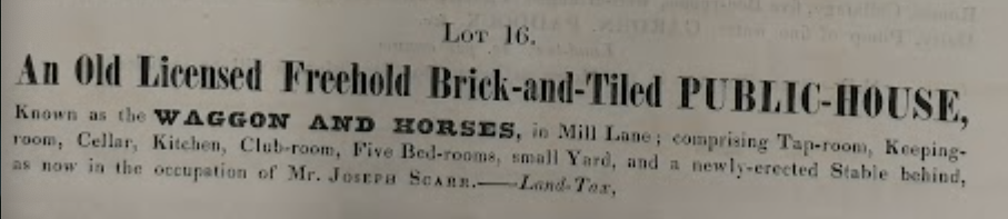 Waggon and Horses, Mill Lane, part of 1842 sale of James Nutter’s properties (Cambridgeshire Archives)