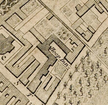 1798 Map of Cambridge showing Hoop Inn & Dolphin Lane