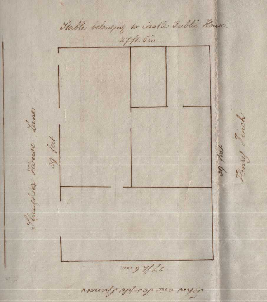 The identure contains a plan of the property. It is on the east side of Slaughterhouse Lane with the stable belonging to the Castle Inn bordering on the north side. The lease is for 40 years and the annual rent is £2 2s plus 2s 6d administrative charge to the Borough Treasurer. However, Eliza still pays £85 for this agreement.