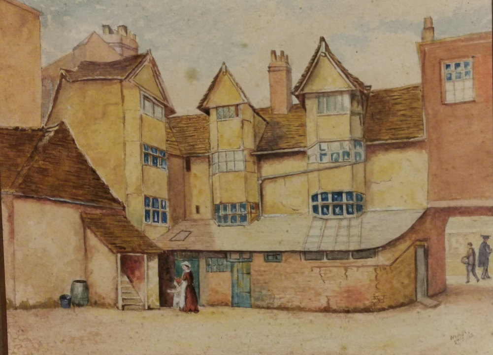 The Wrestlers Inn, painted by Margaret Wadsworth in 1902 from an earlier image