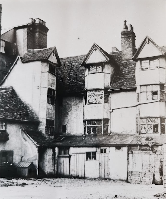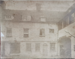 Rear view of Petty Cury houses seen from yard of Wrestlers c.1870 (J Palmer Clarke)