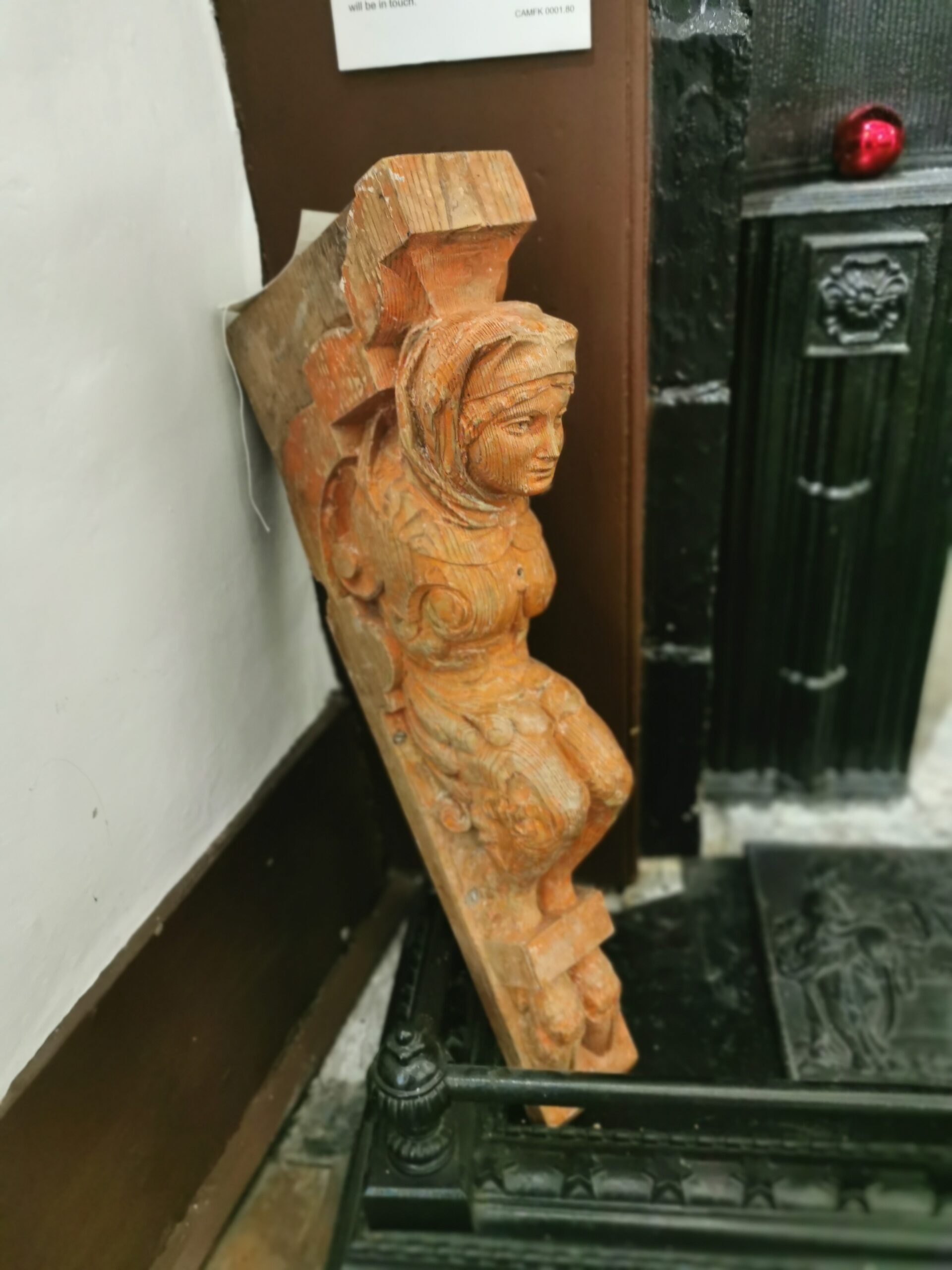 70 Sidney Street Kittridge tobacconist & 69 Warrington butchersThe limited information about this figure, a woman with cloven feet (provenance tobacconist’s) might suggest the Deer Woman figure of Native America Mythology. Traditions say she can be controlled though chanting and use of tobacco. However, at the moment there seems to be little known about the use of such mythological imagery. The Museum of Cambridge would welcome further information. However, in 2024 a note was discovered suggesting that the statue was one of four which came from 17 Petty Cury in 1972.