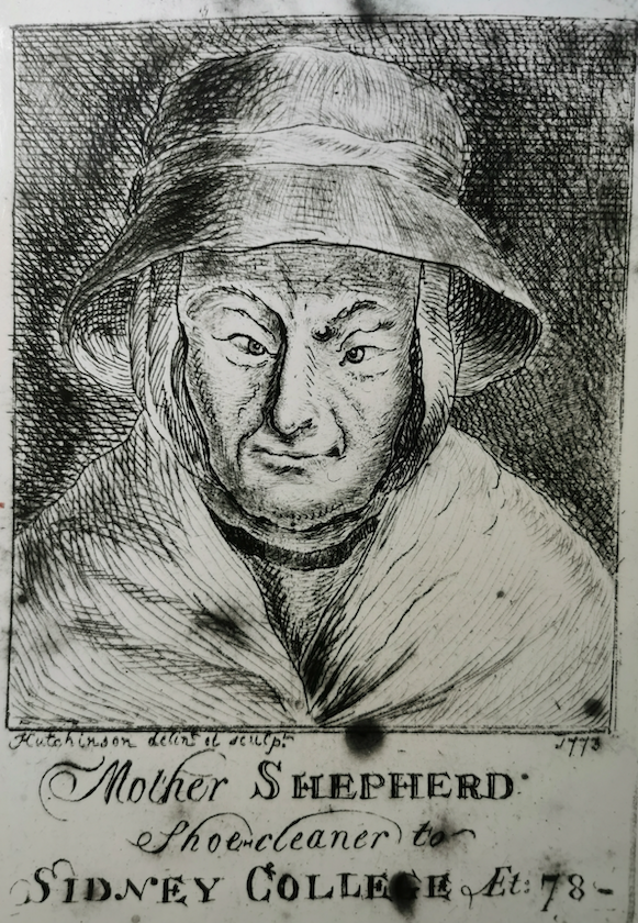 Mother Shepherd, shoe cleaner of Sidney College c 1773 (MoCPB168.82)General information about Sidney Sussex College can be found on Wikipedia.