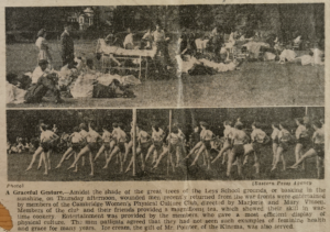 The Cambridge Women’s Physical Culture Club was based at the Dorothy Cafe. However, they would often demonstrate their synchronized displays outside at locations such as the Leys School. Our archive of photos and cuttings belonged to Mrs Gladys Morley, wife of Dan Morley the garage owner and car dealer of Pleasant Hill.
