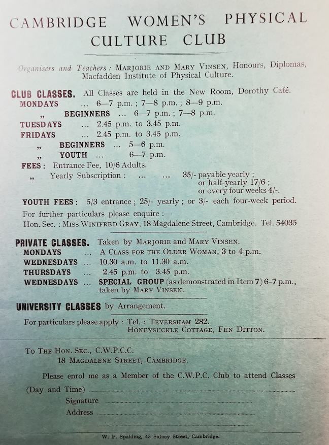 Cambridge Women’s Physical Culture Club 1953 Dorothy Cafe