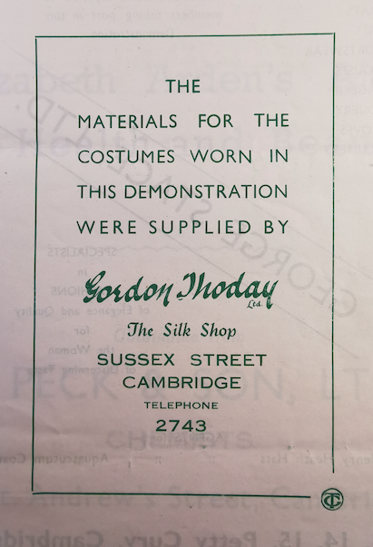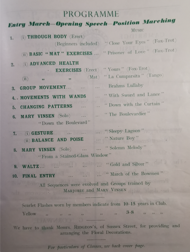 Cambridge Women’s Physical Culture Club – Demonstration 1947 twice nightly May 6,7,8.