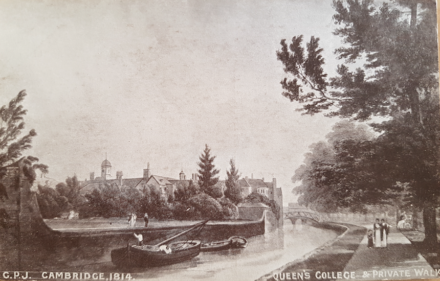 Queen's College Cambridge & private walk 1814More information about Queens’ College and the River Cam can be found here: