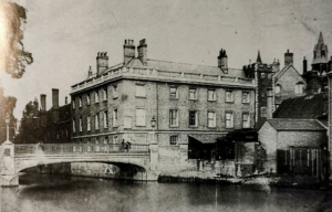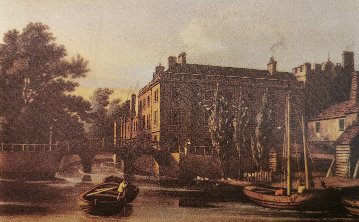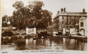 The Hamond map of 1592 shows no houses west of the Small Bridges except for one building on an island which seems to correspond to the ‘Little Island‘ in Darwin College garden.