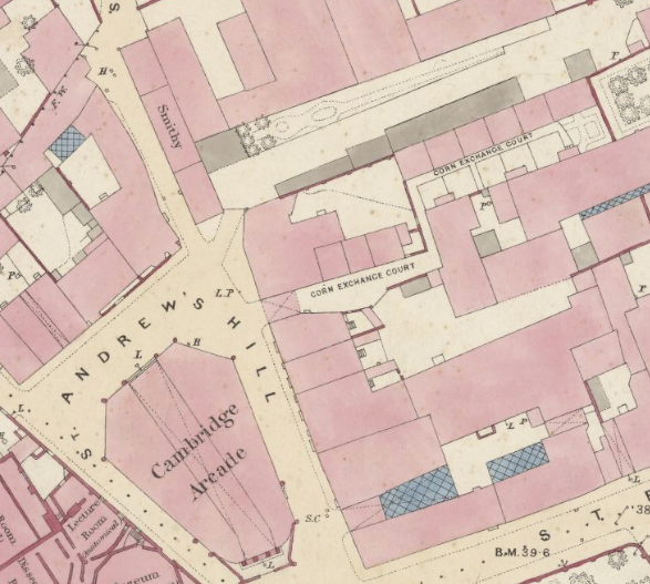 Corn Exchange Court 1885 OS map (from Grand Arcade report)