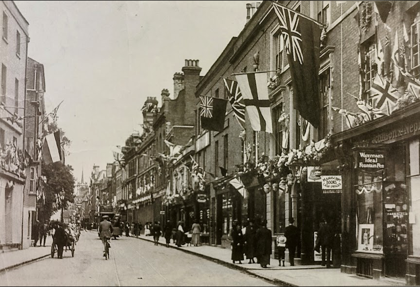 3 St Andrew’s Street and other properties, decorated for the coronation of George V, 1911 (Cambridgeshire Collection)