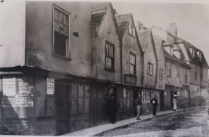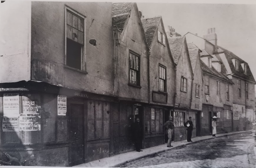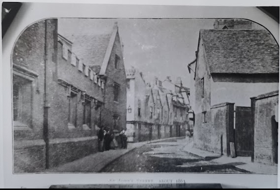 St John's Street, looking towards Bridge Street, 1 - 7 St John's Street on left beyond college. 1863 (MoC 38/72)1861