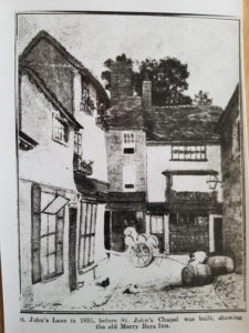 11 St Johns Street, CambridgeThe Merry Boys was situated at 11 St John Street. This pub was present by 1830, at which time it was called the Three Merry Boys. By the mid-1850s it was tied to the long-gone Thompson’s Lane Brewery of Cambridge. It survived until at least 1895.