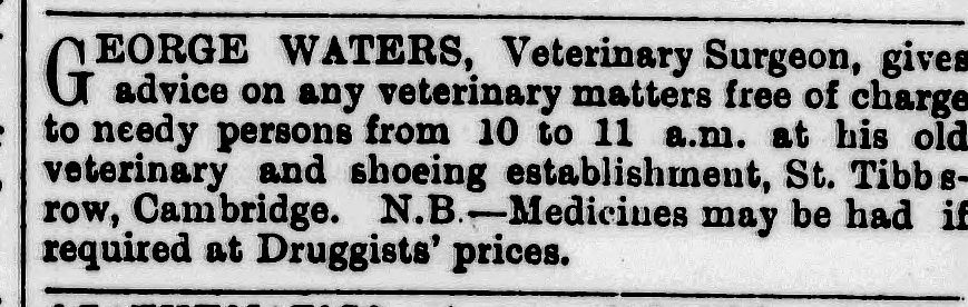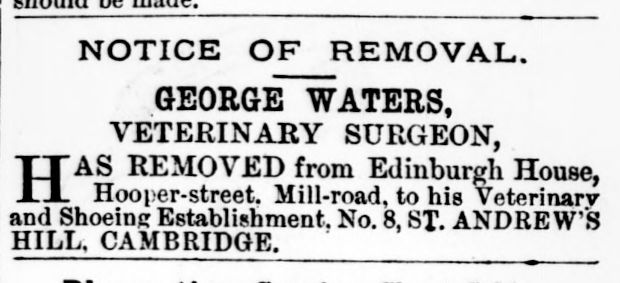 George Waters, veterinary surgeon, 8 St. Andrew’s Hill