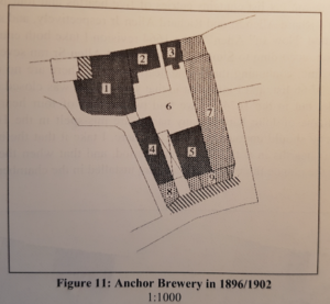1849 William Potts gained title to the Anchor Brewery and managed it in the second half of the 19th century; it was put up for sale by George, Henry and Frank Potts in 1896.